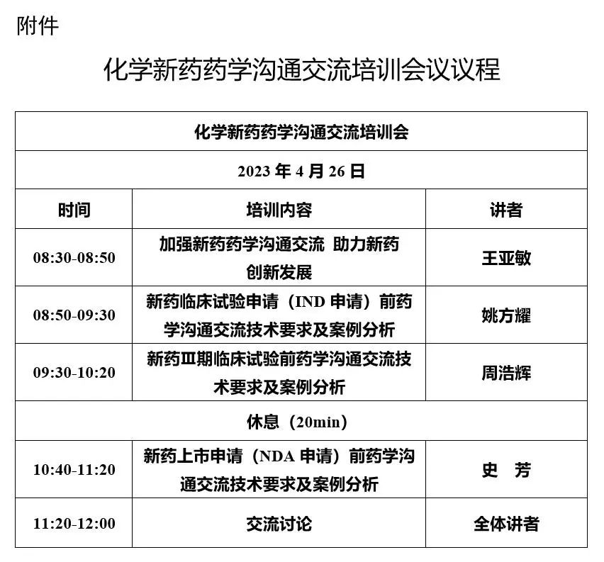 介紹新藥藥學(xué)溝通交流、IND/NDA/新藥Ⅲ期臨床試驗(yàn)前藥學(xué)溝通交流技術(shù)要求及案例分析等,具體議程詳見附件。